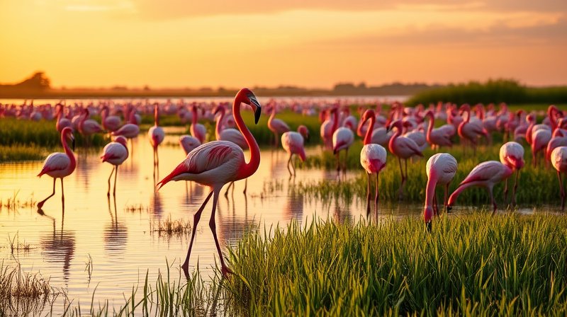 הפלמינגו המצוי הוא עוף מים ממשפחת הפלמינגואיים, הנפוץ באפריקה, אסיה ואירופה. זהו עוף חברותי החי בלהקות גדולות, בעיקר בבריכות, אגמים ולגונות רדודות ומלוחות. אורכו נע בין 120 ל-150 ס"מ ומשקלו בין 2 ל-4 ק"ג. מקורו הייחודי, המכופף כלפי מטה, משמש כמסננת לסינון מזון מהמים — בעיקר סרטנים ואצות המעניקות לו את צבעו הוורדרד. בישראל ניתן למצוא אותו בחורף ובעונות הנדידה, בעיקר בבריכות המלח באילת ובעתלית, ולעיתים גם באזורי מעיינות וביצות כגון שמורת החולה ועמק המעיינות.
